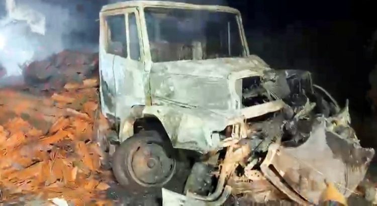Ainda segundo os membros das Forças de Segurança, o caminhão transportava uma carga de telhas e o motorista teria pulado logo após a batida. Já o condutor do carro de passeio não teve tempo de sair a tempo e morreu queimado e preso às ferragens.